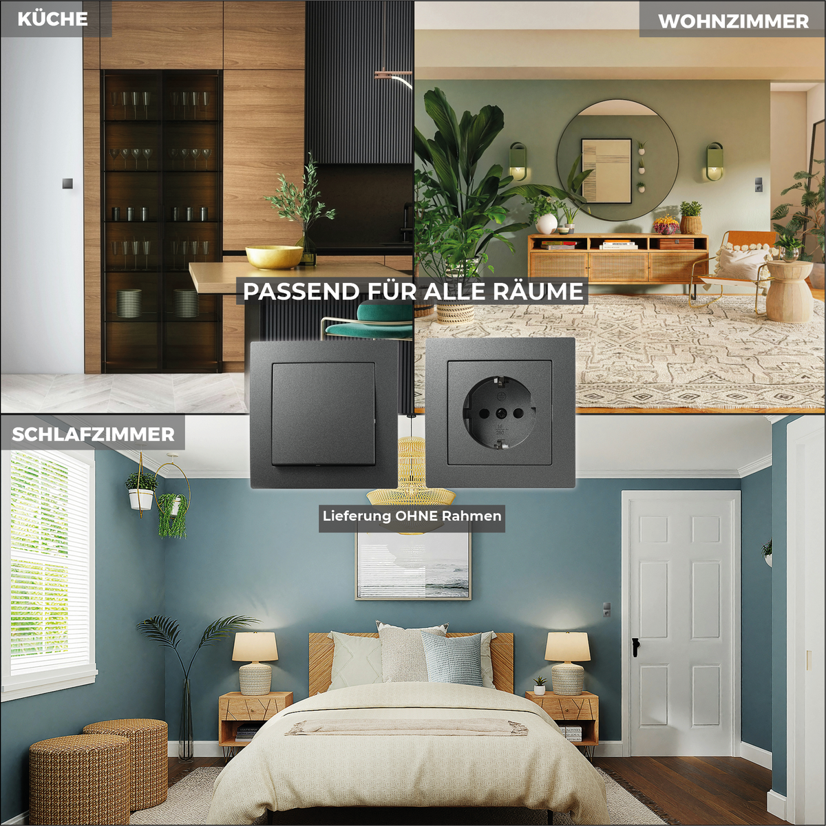 McPower "Flair" Kreuzschalter 250V~/10A, UP, anthrazit