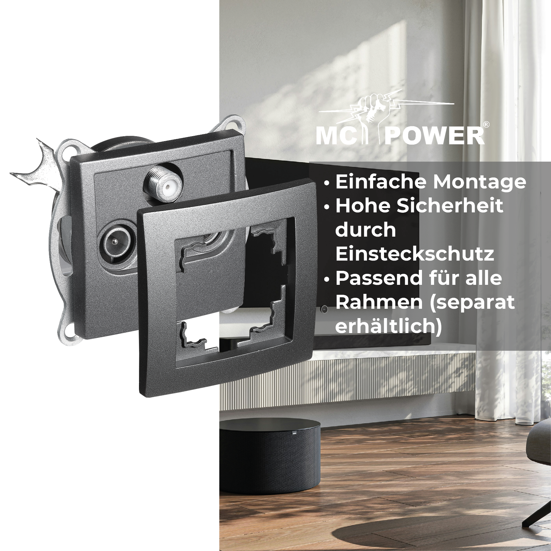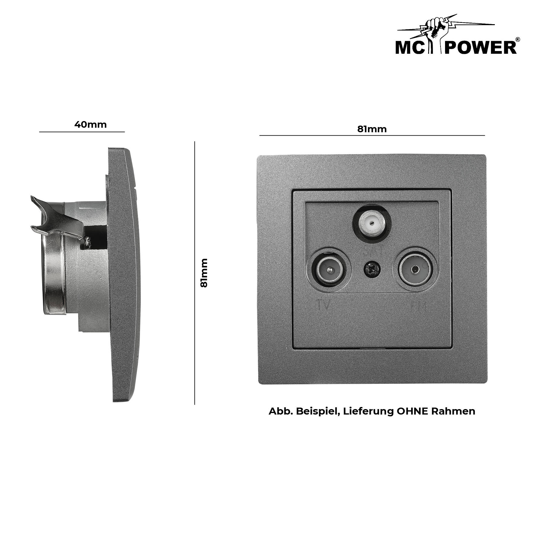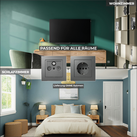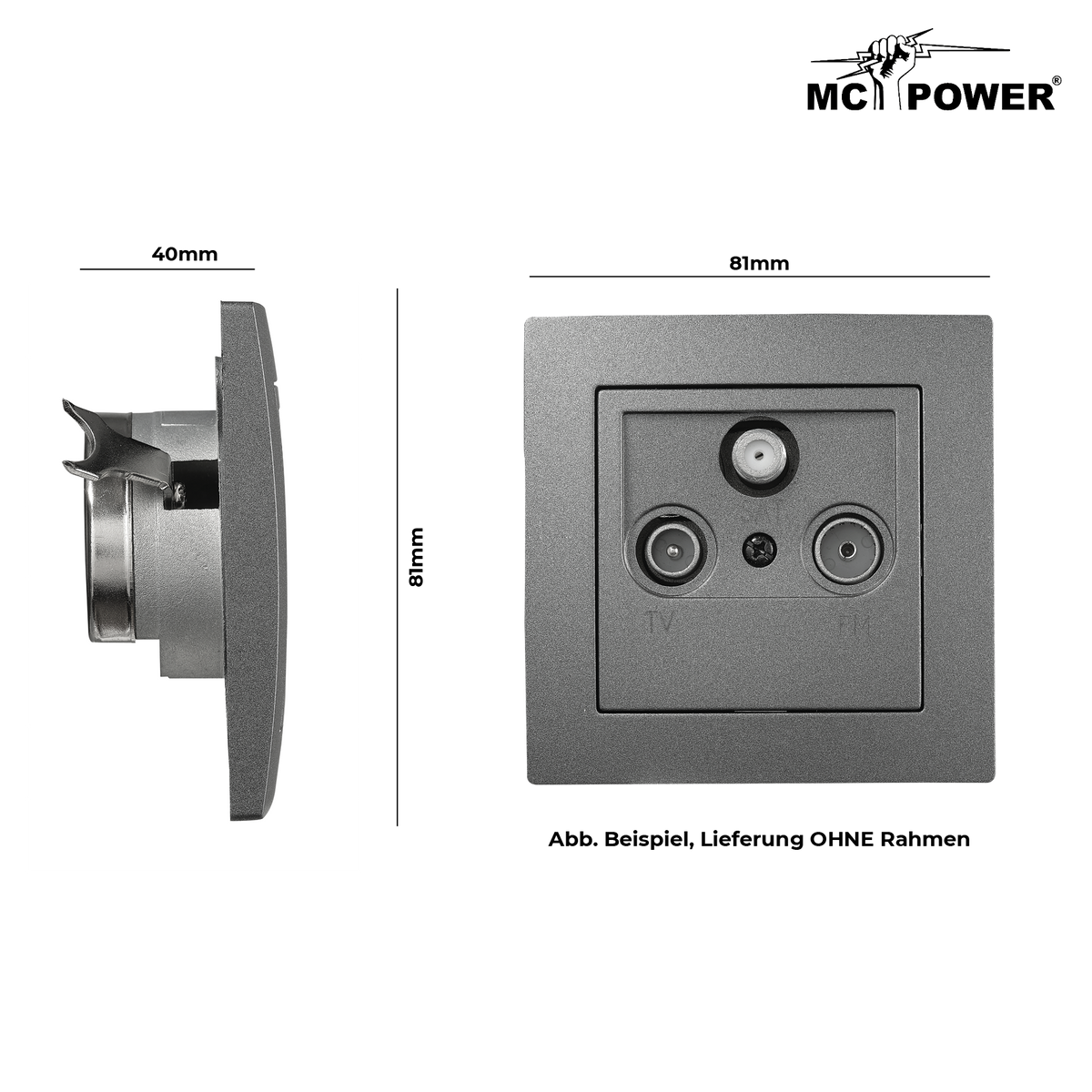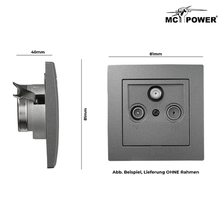 McPower "Flair" SAT/TV/Radio Antennendose mit 3 Ausgängen, UP, anthrazit