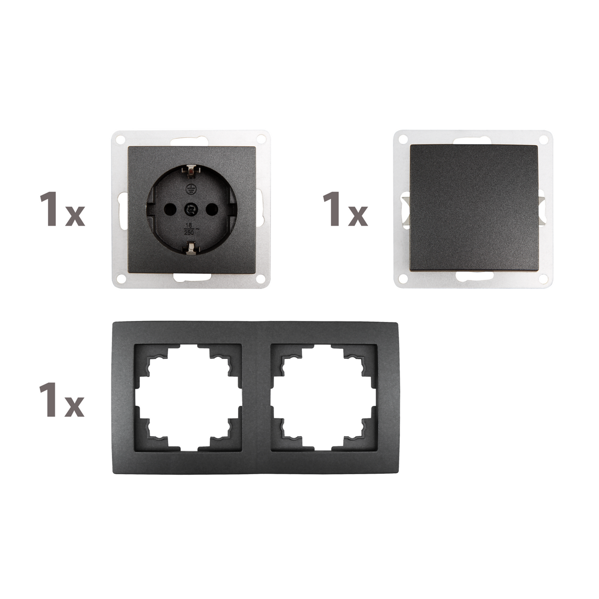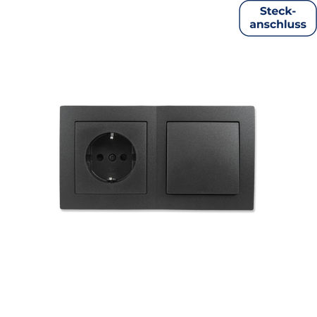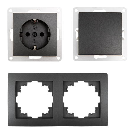 McPower "Flair" Schalter und Steckdosen Set, komplett inkl. 2-fach Rahmen, Steckanschluss, anthrazit