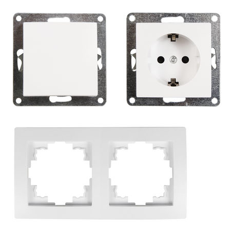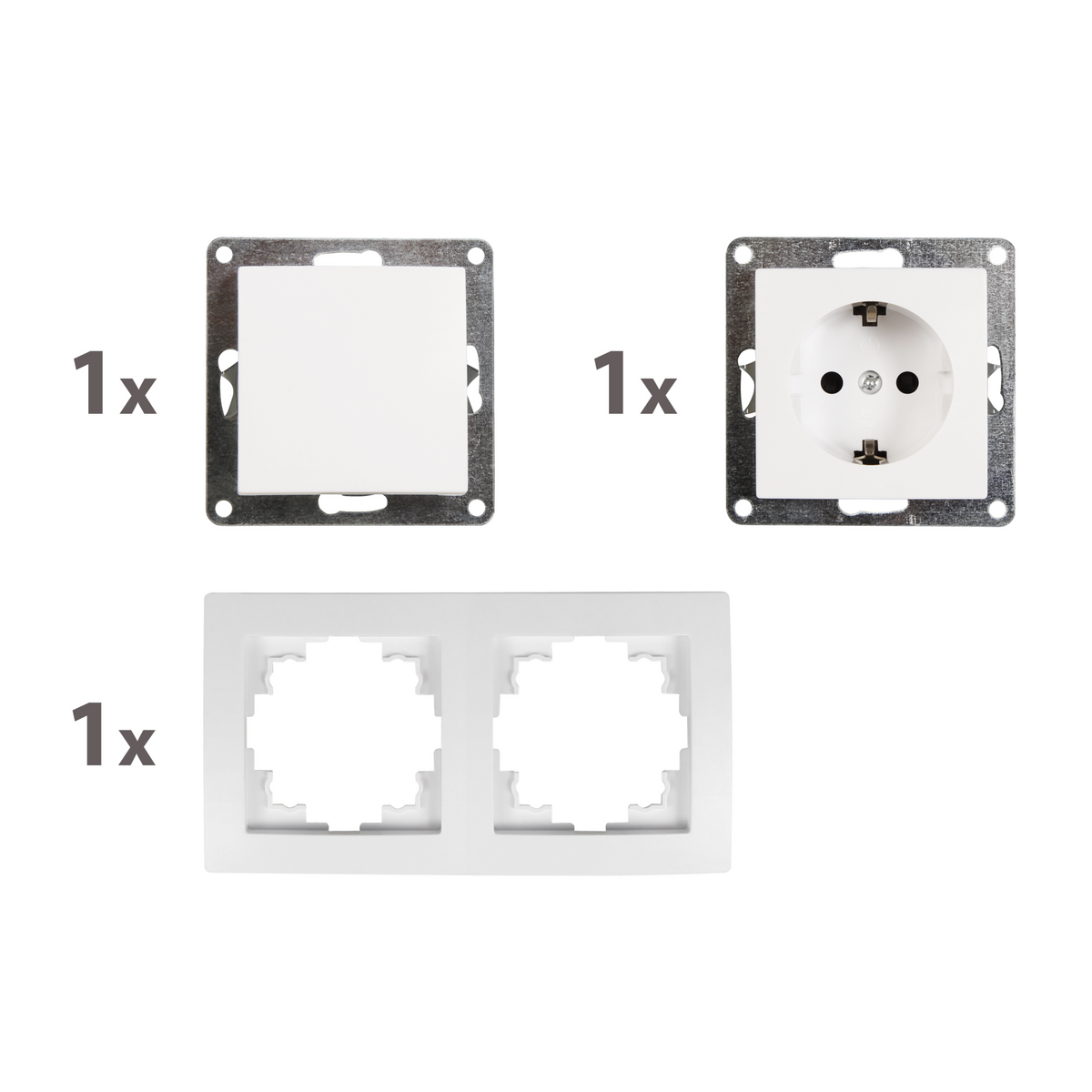 McPower "Flair" Schalter und Steckdosen Set, komplett inkl. 2-fach Rahmen, Steckanschluss, weiß