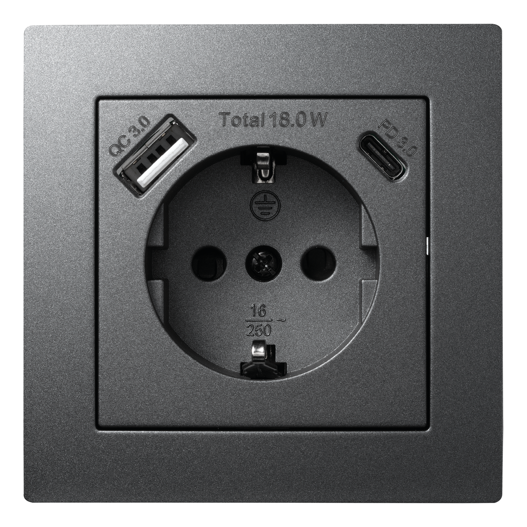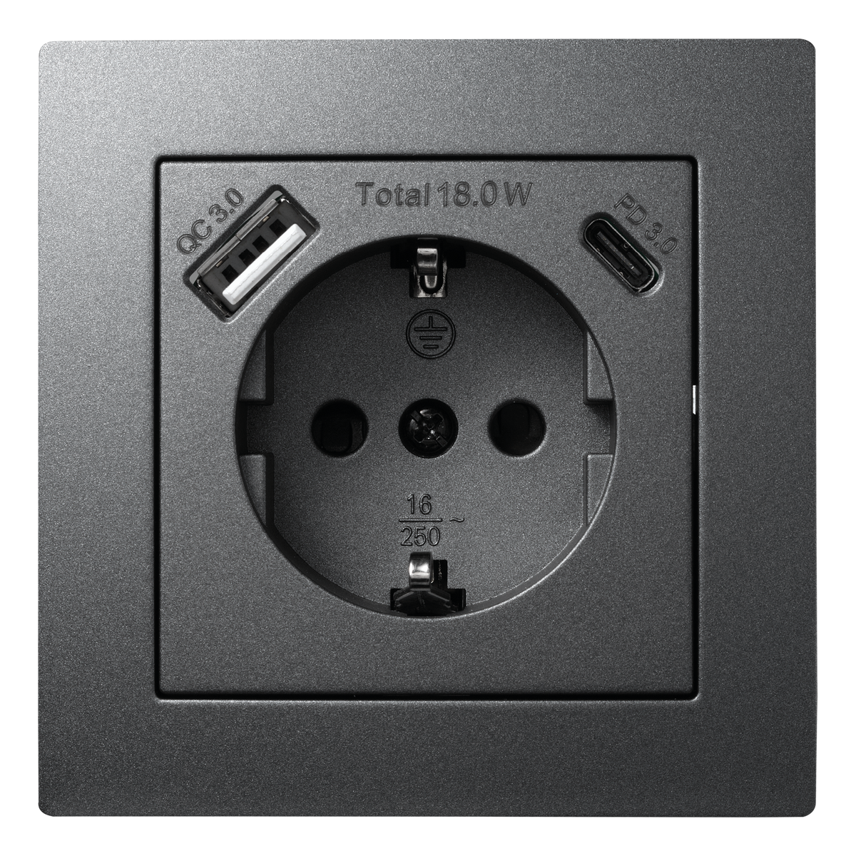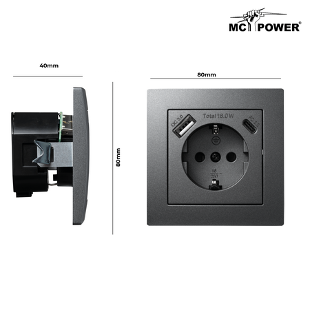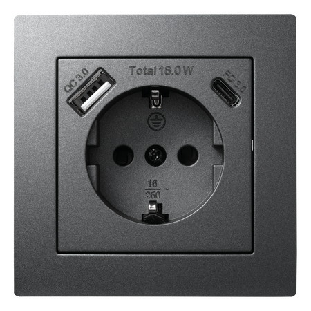 McPower "Flair" Schutzkontakt-Steckdose mit 1x USB-C 18W PD, 1x USB-A, UP, anthrazit