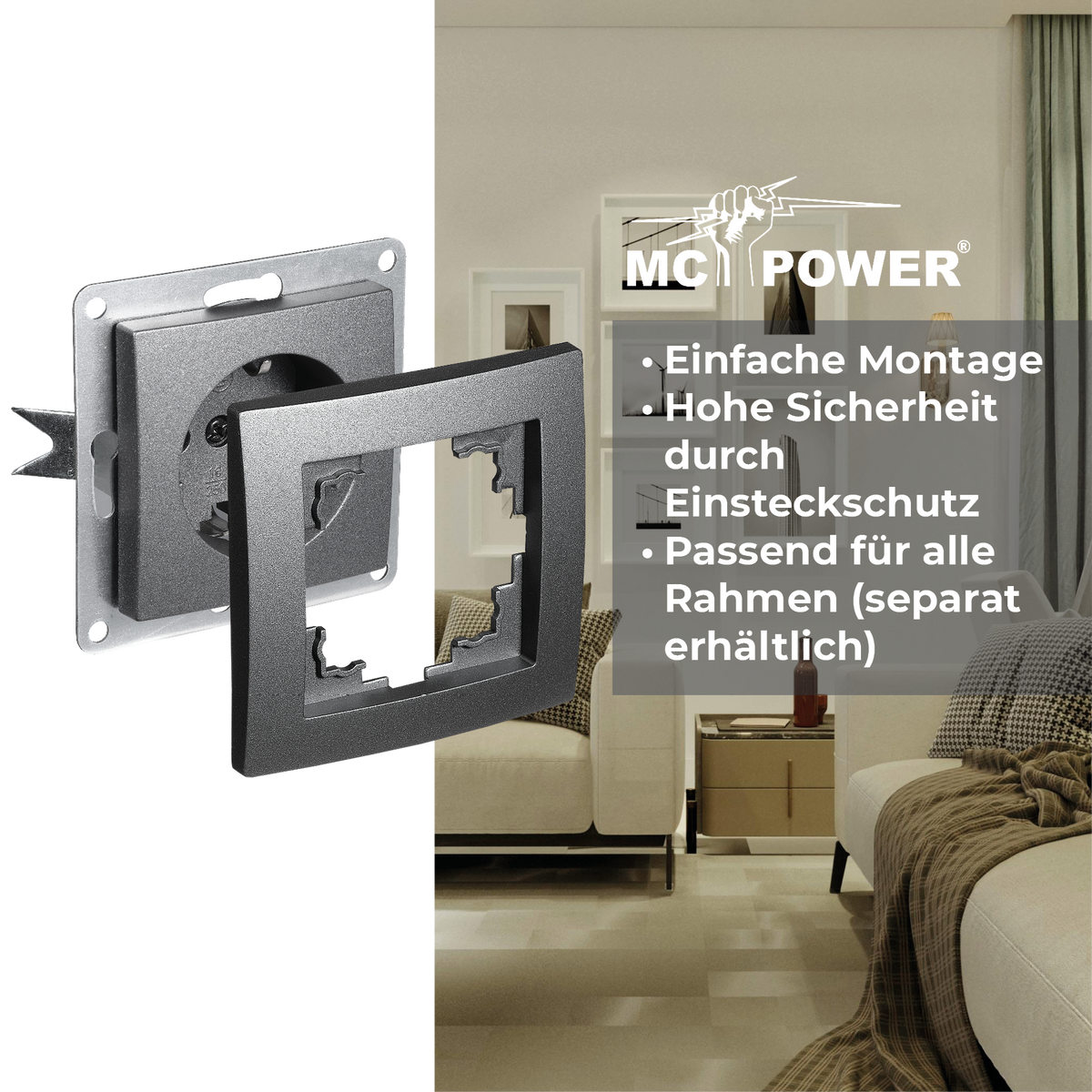 McPower "Flair" Schutzkontakt-Steckdose mit erhöhtem Berührungsschutz 250V~/16A, UP, anthrazit