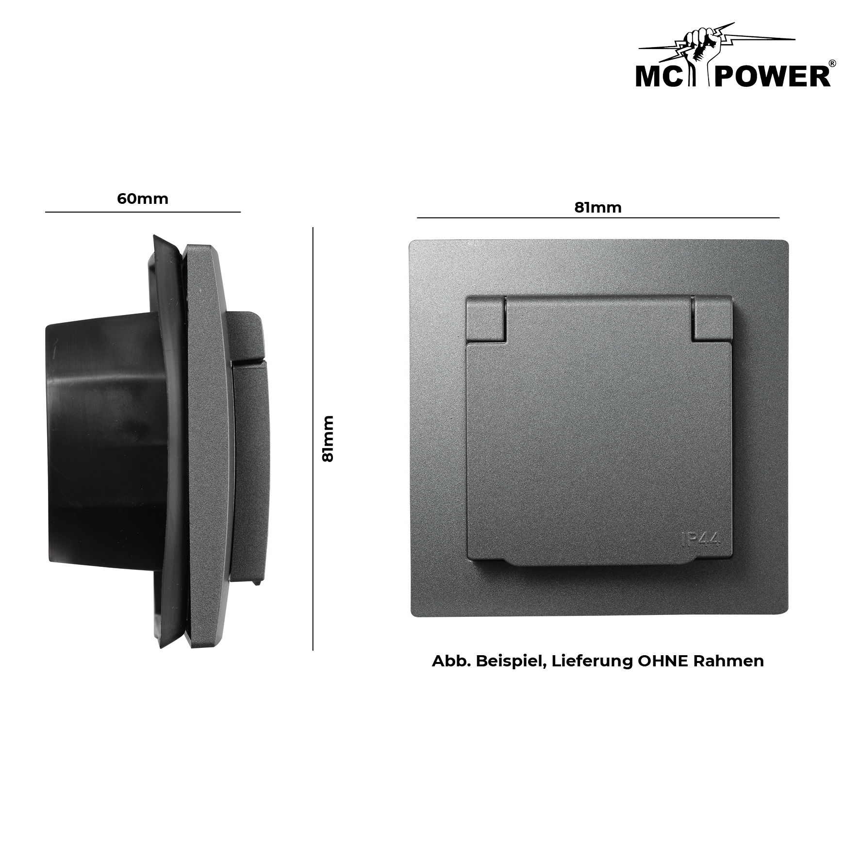 McPower "Flair" Schutzkontakt-Steckdose mit Klappdeckel 250V/16A, UP, IP44, Steckanschluss
