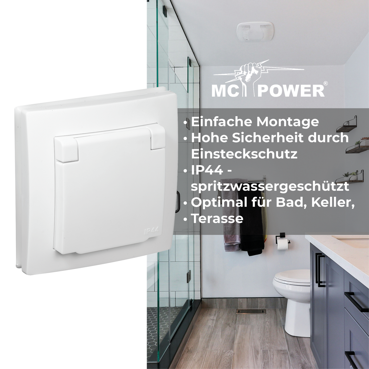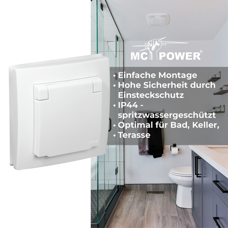 McPower "Flair" Schutzkontakt-Steckdose mit Klappdeckel 250V~/16A, UP, IP44, weiß