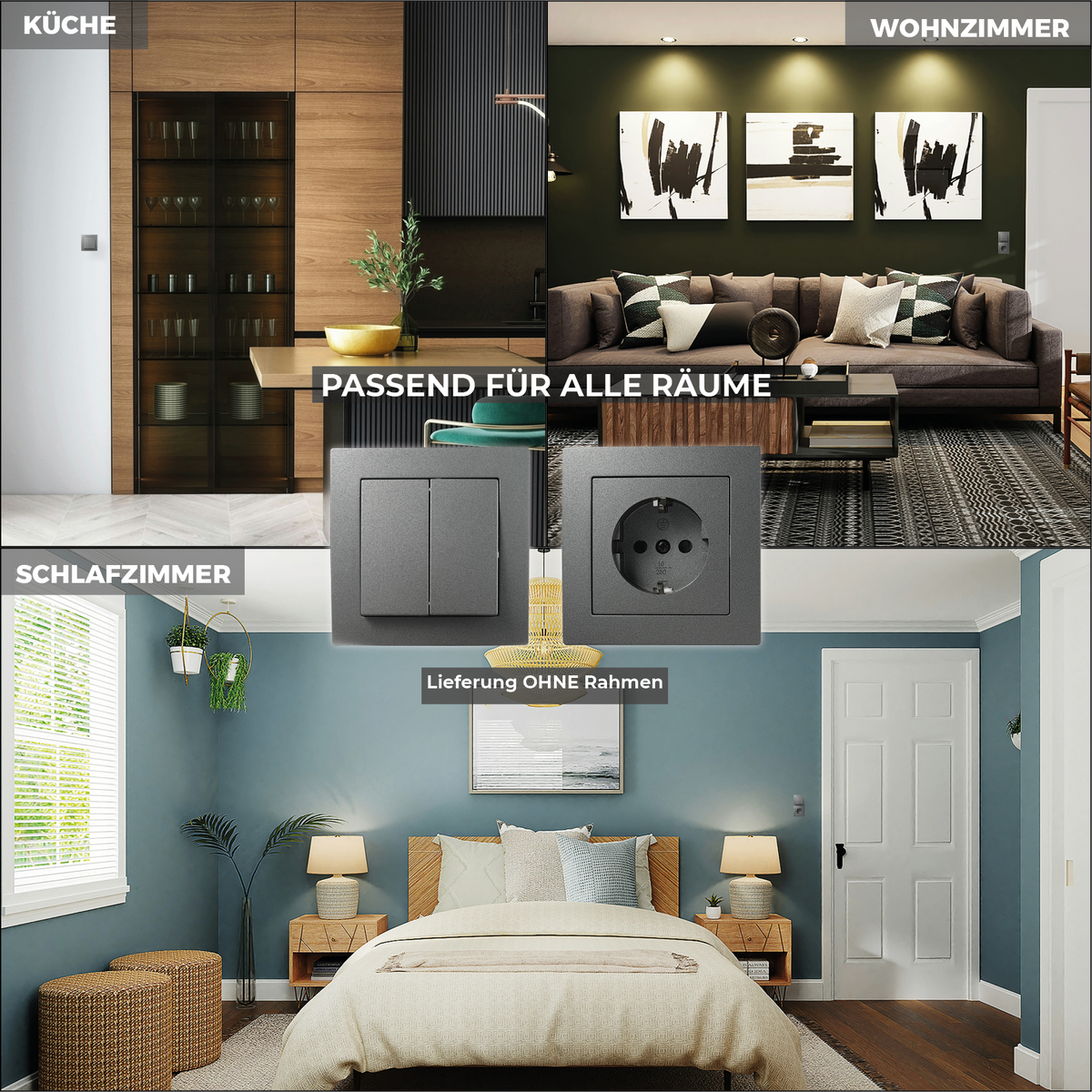 McPower "Flair" Serienschalter 250V~/10A, 2-fach Schalter, UP, anthrazit