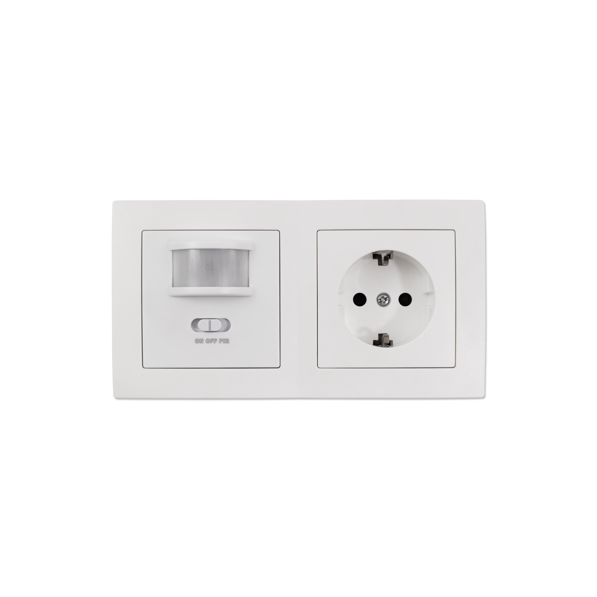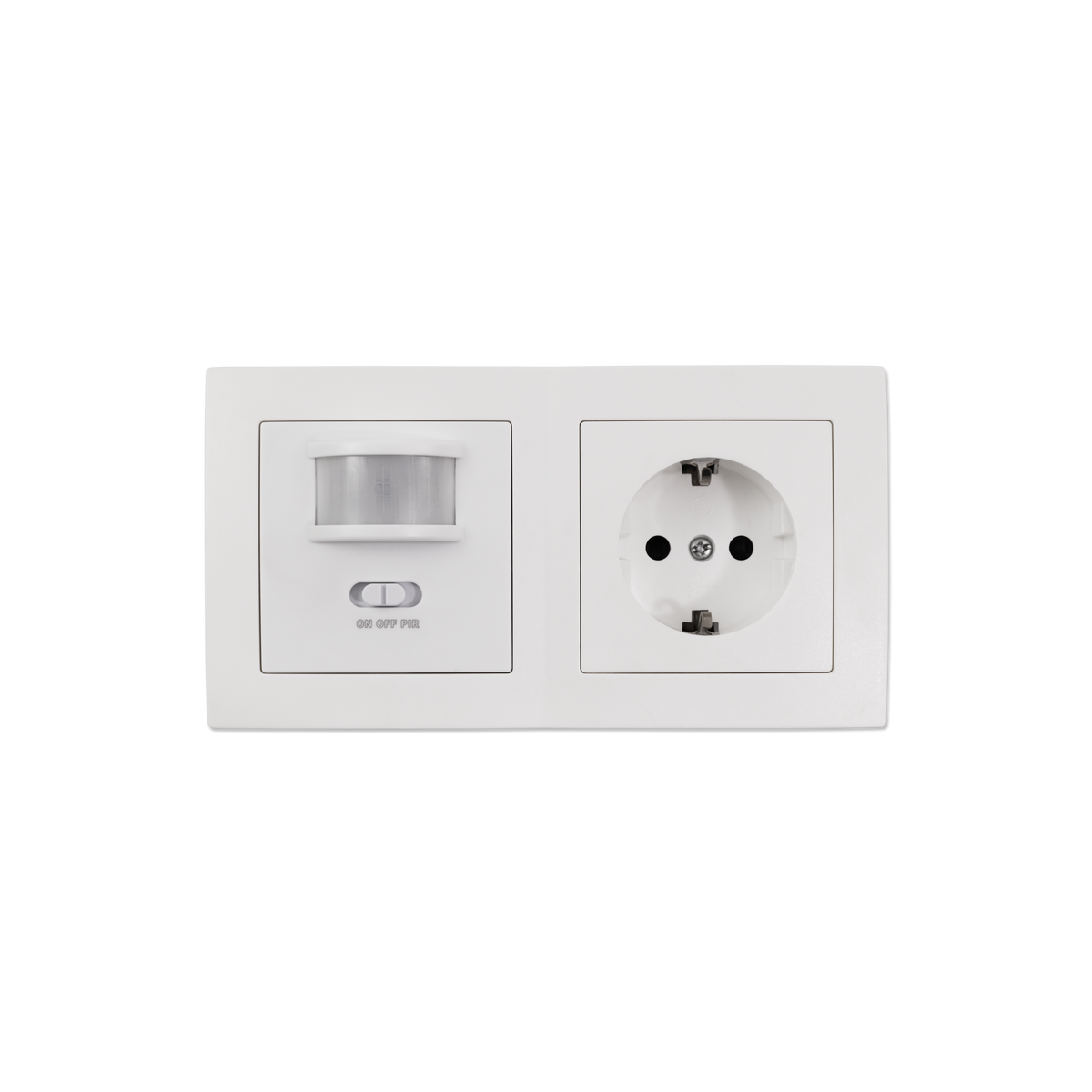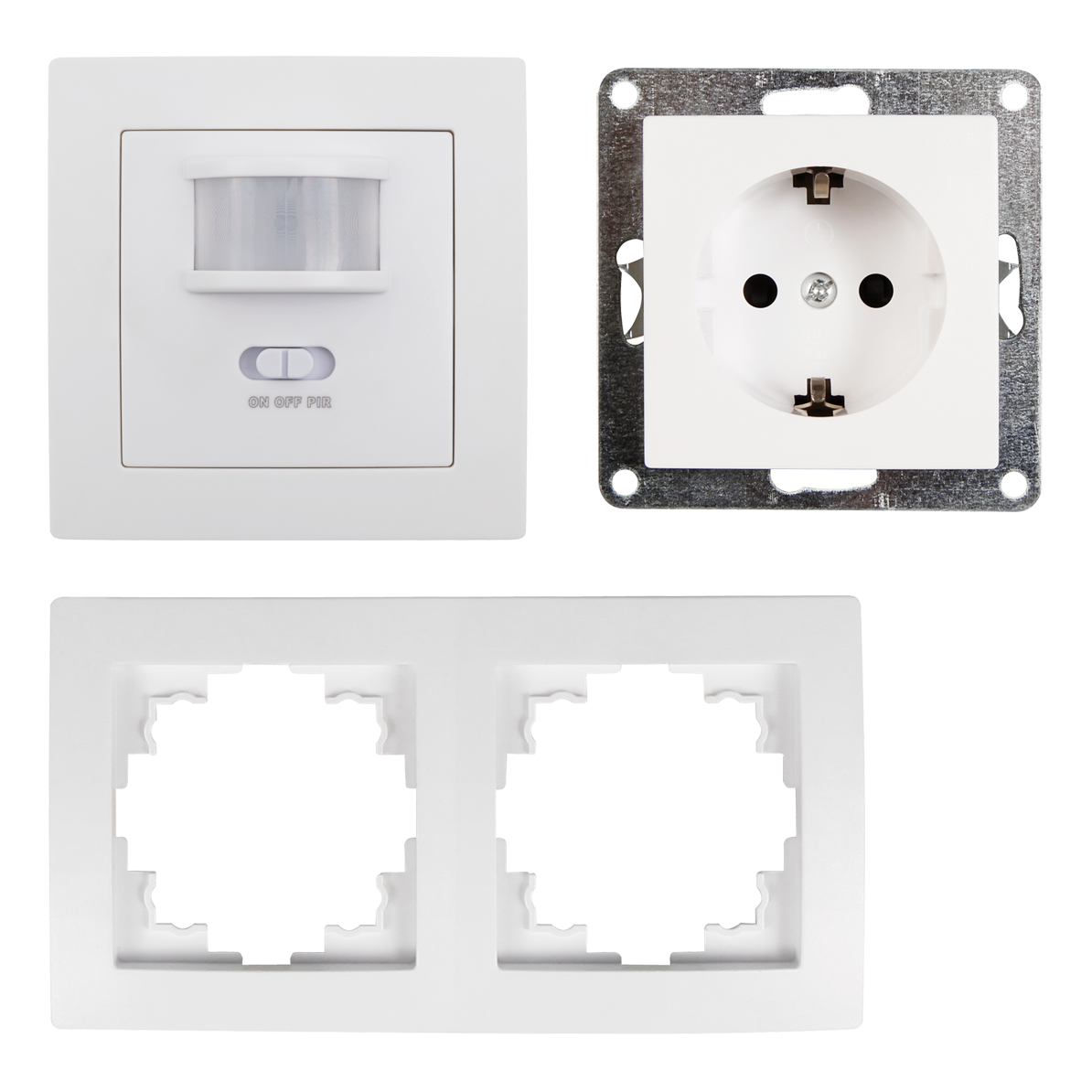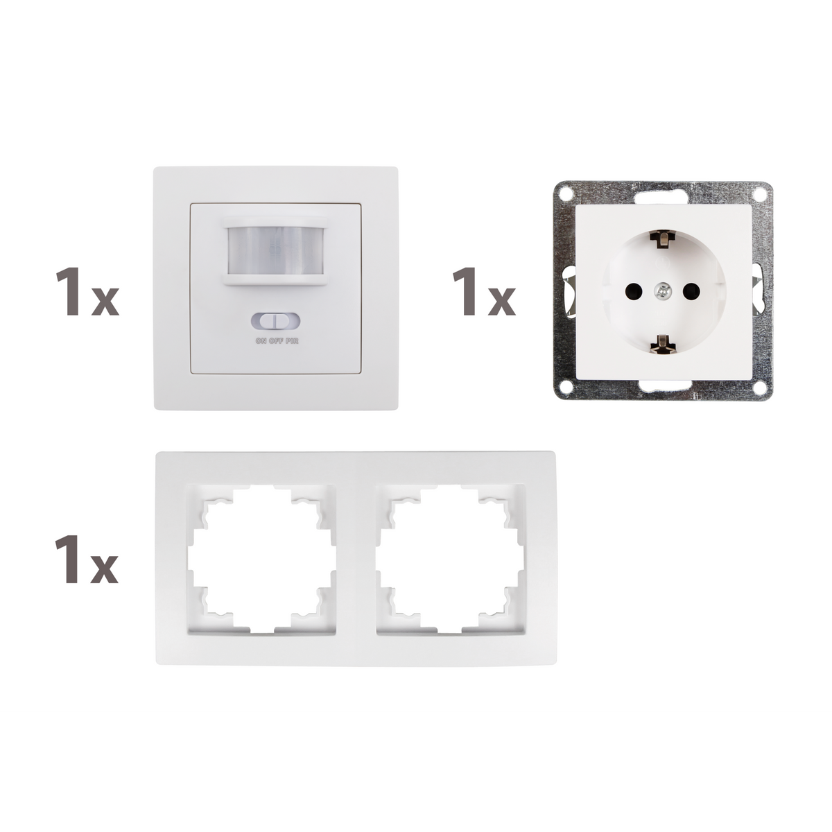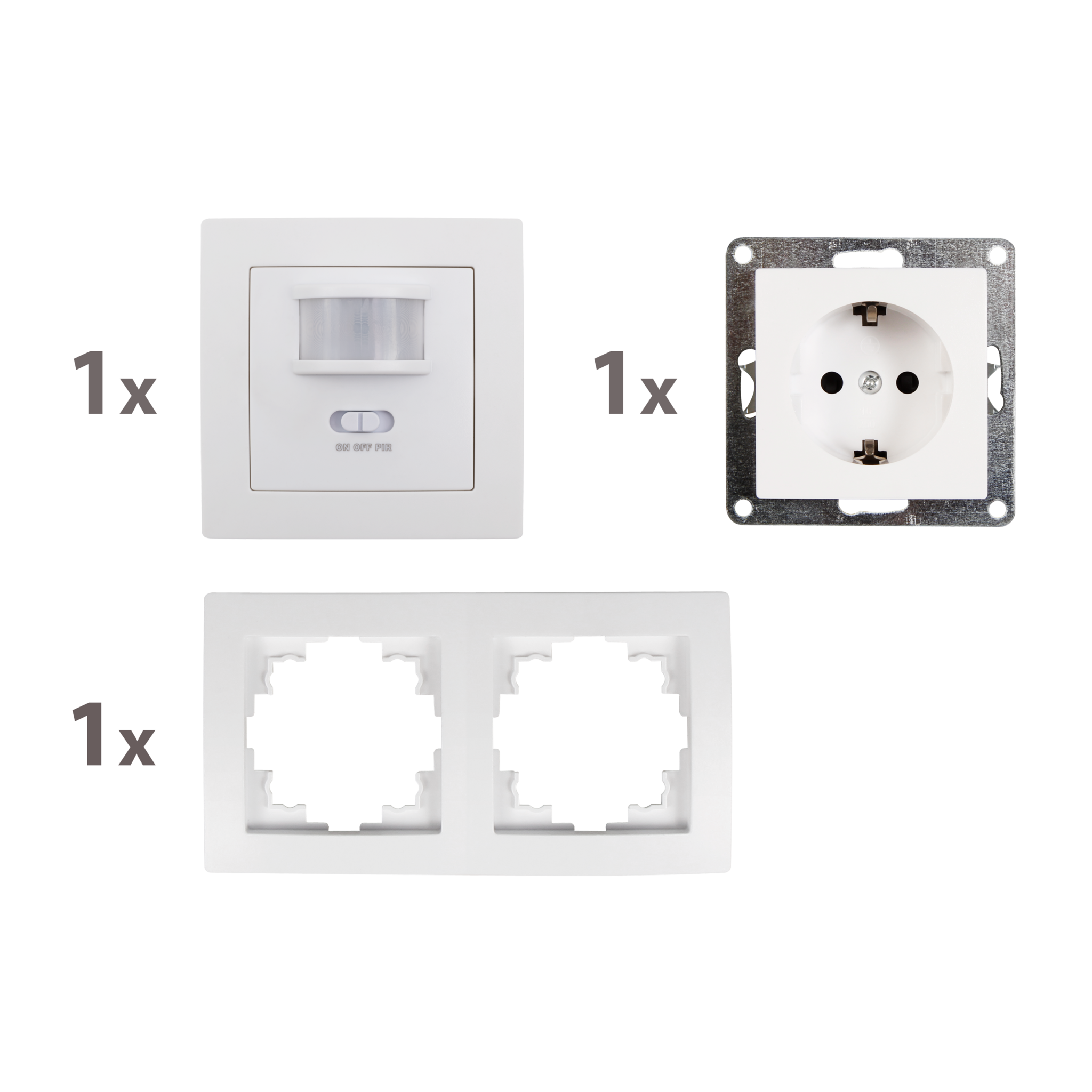 Bewegungsmelder + Steckdose + 2-fach Rahmen
