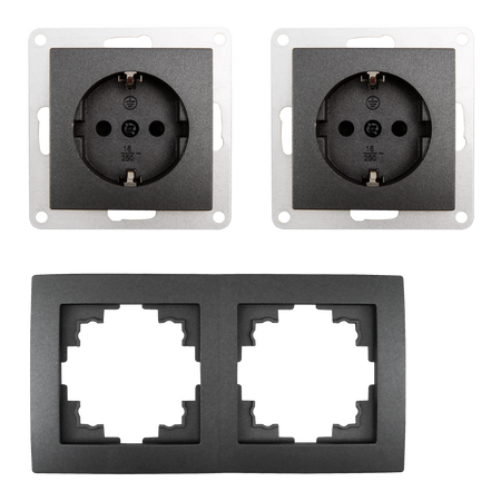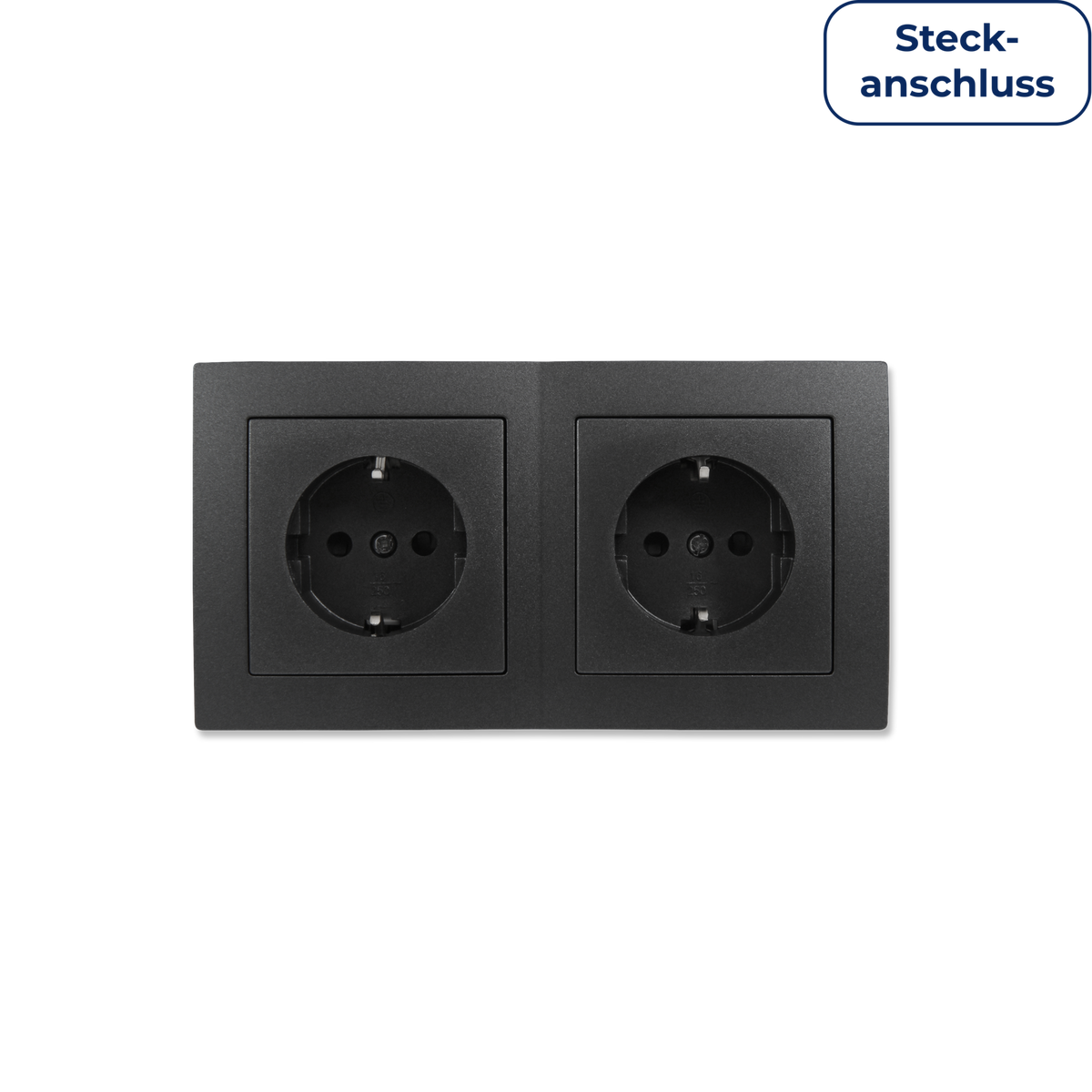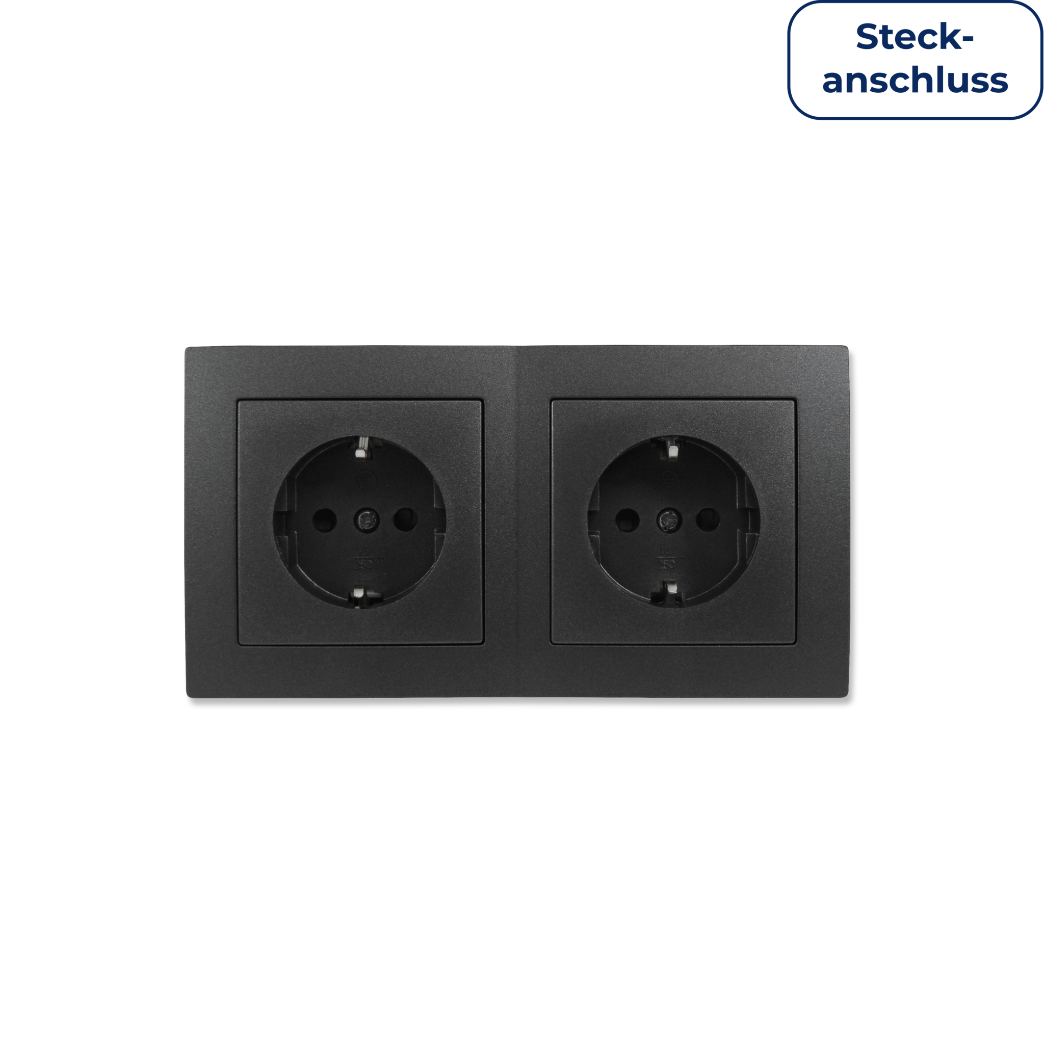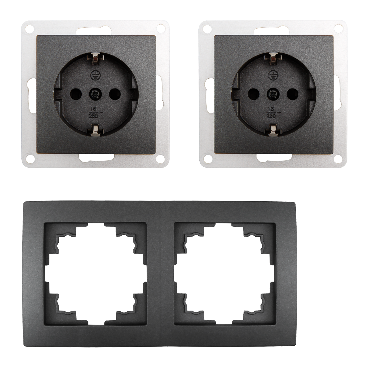 McPower "Flair" Steckdosen Set, komplett inkl. 2-fach Rahmen, Steckanschluss, anthrazit