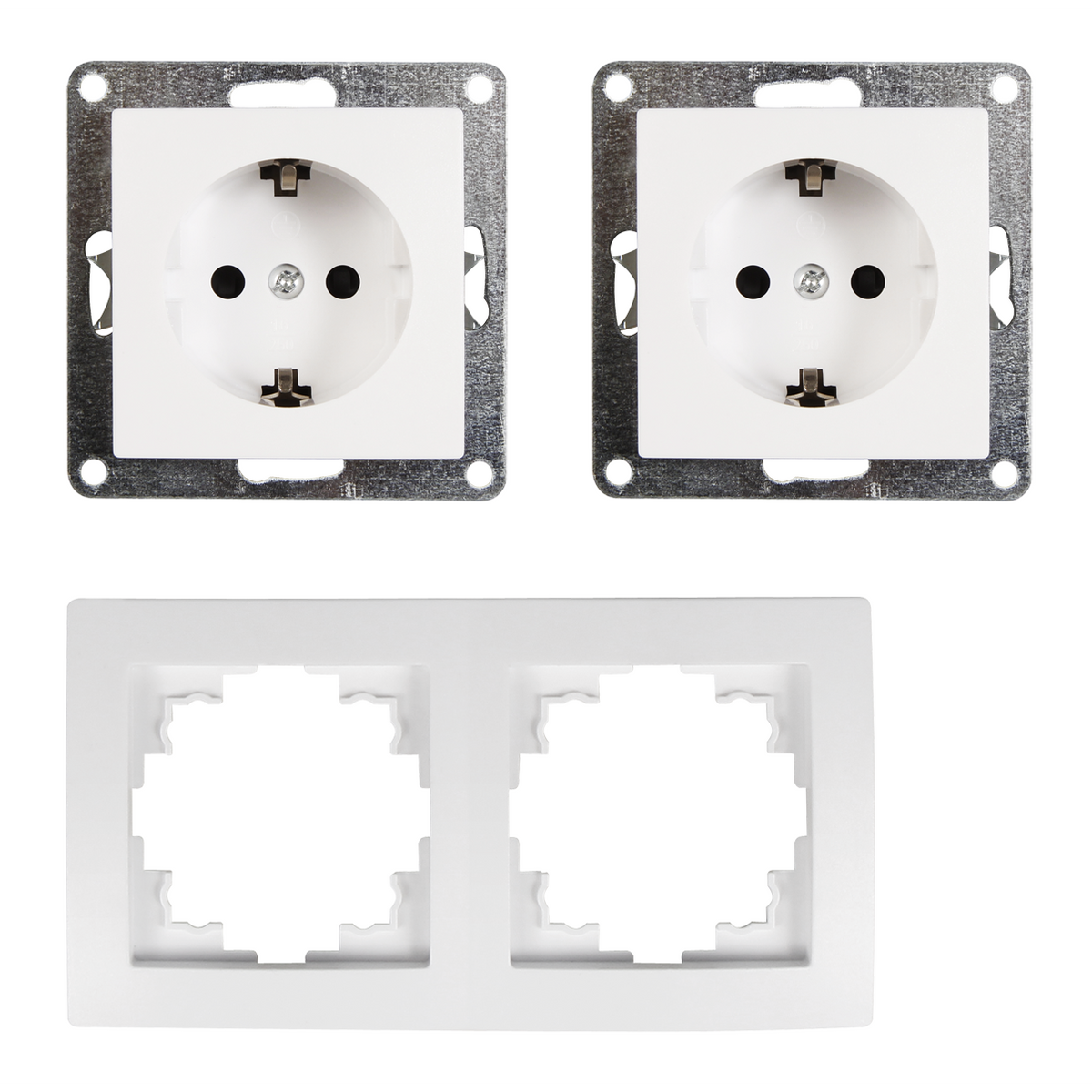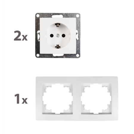 McPower "Flair" Steckdosen Set, komplett inkl. 2-fach Rahmen, Steckanschluss, weiß