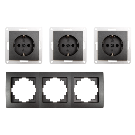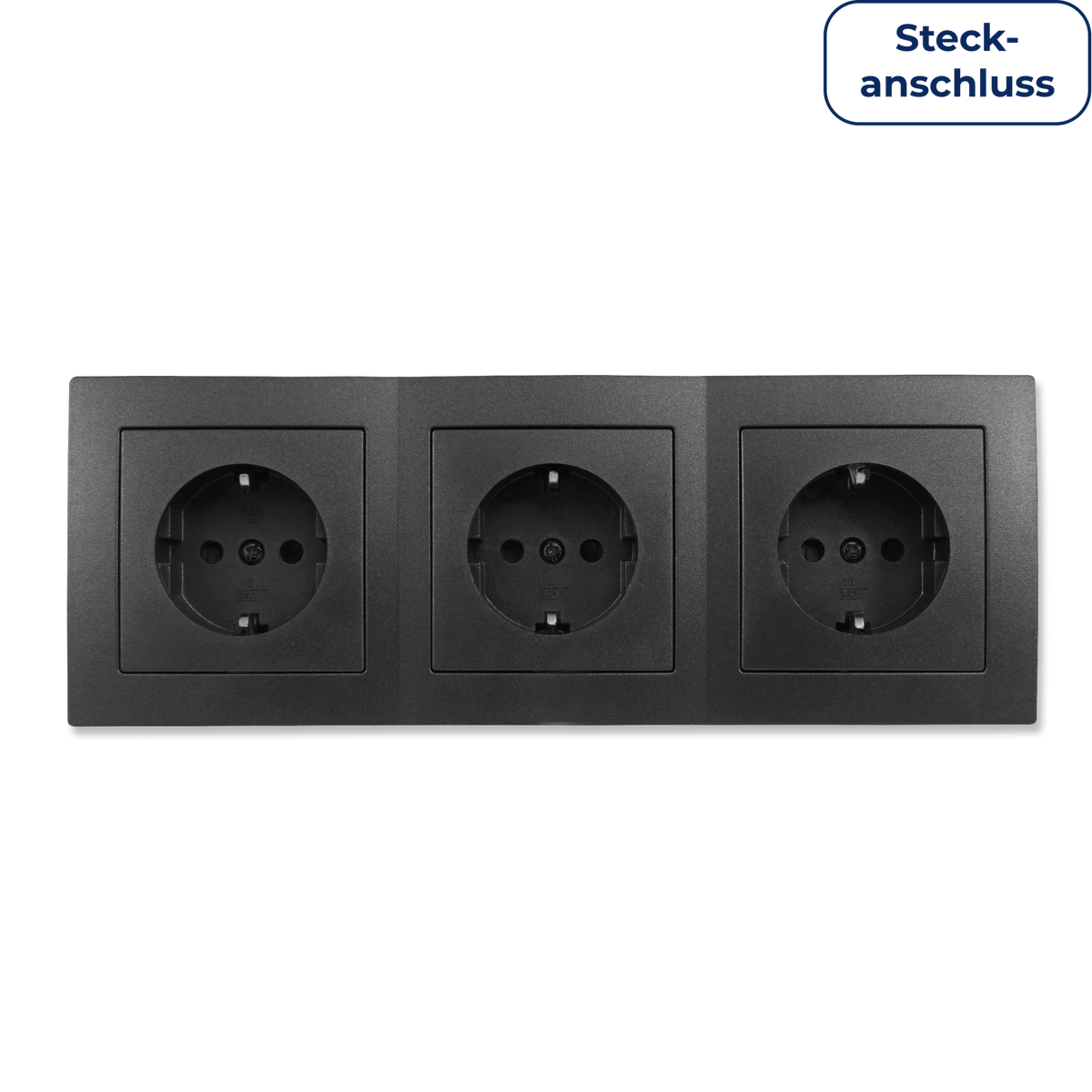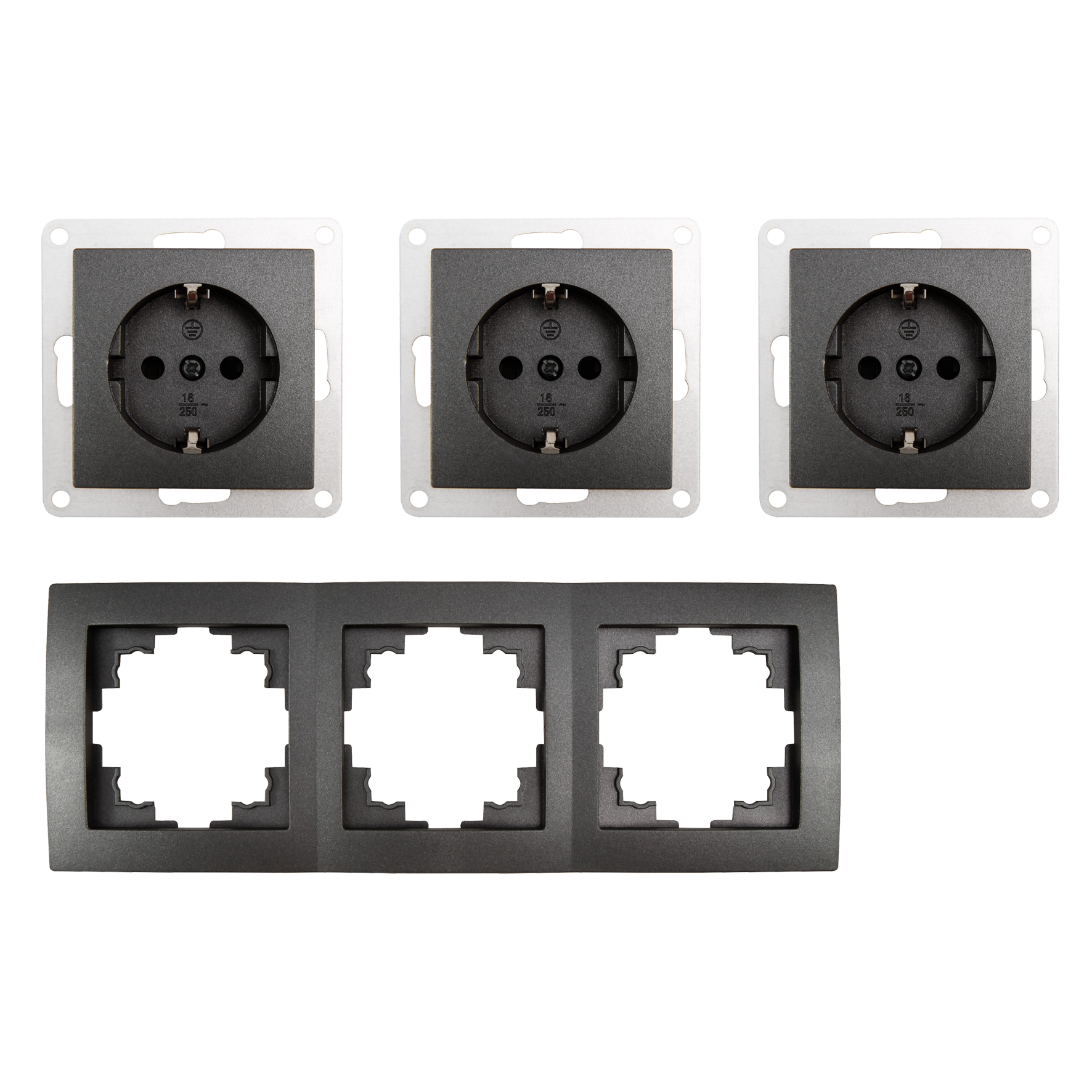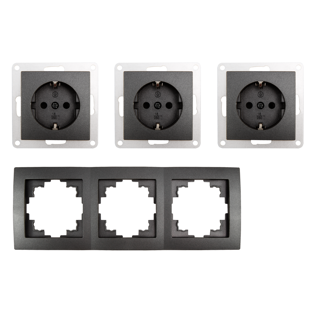 McPower "Flair" Steckdosen Set, komplett inkl. 3-fach Rahmen, Steckanschluss, anthrazit