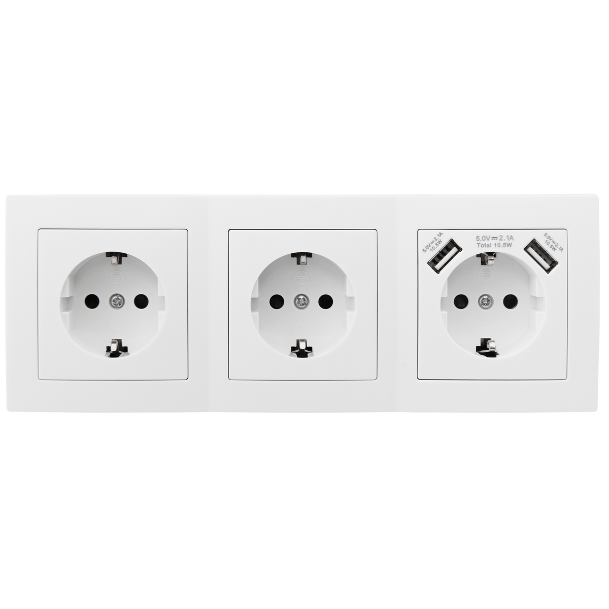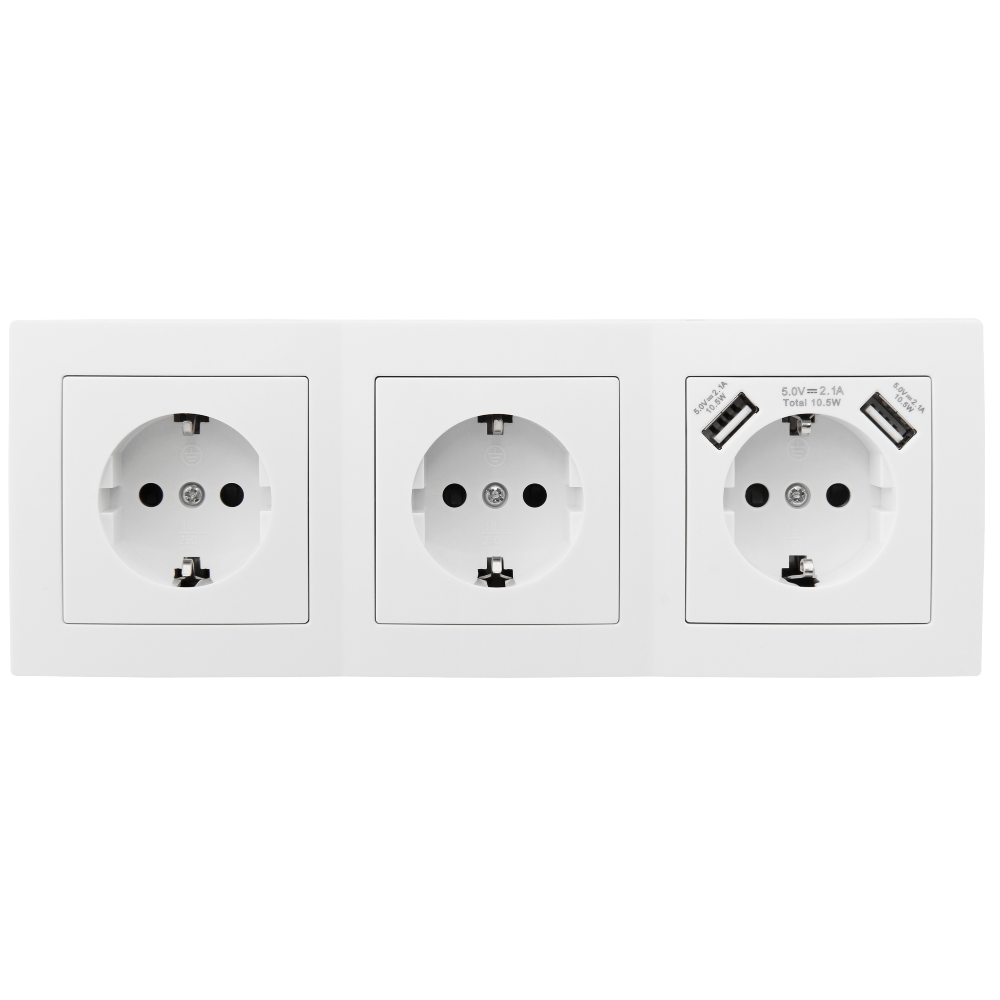- 2x Schutzkontakt Steckdose + 1x Schutzkontakt inkl. 2xUSB
