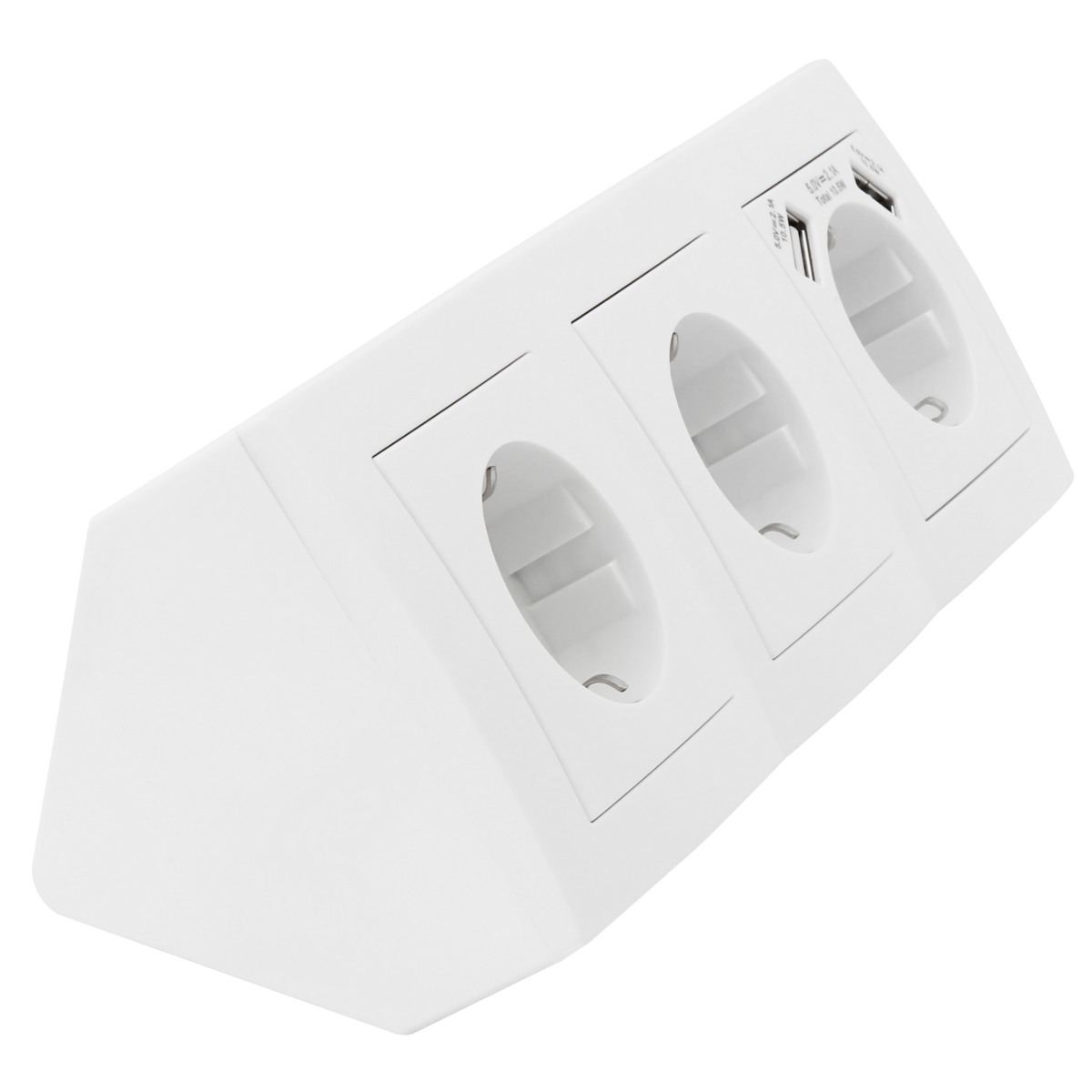 McPower "Flair" Steckdosenblock Aufbau, 2 x SCHUKO-Steckdose mit erhöhtem Berührungsschutz + 1 x SCHUKO Steckdose mit 2 x USB, weiß,