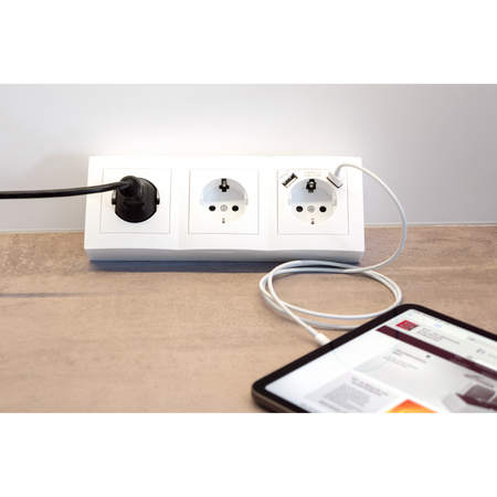 - 1 x Steckdose mit erhöhtem Berührungsschutz - 230V / 50Hz + 2x USB 2,1A