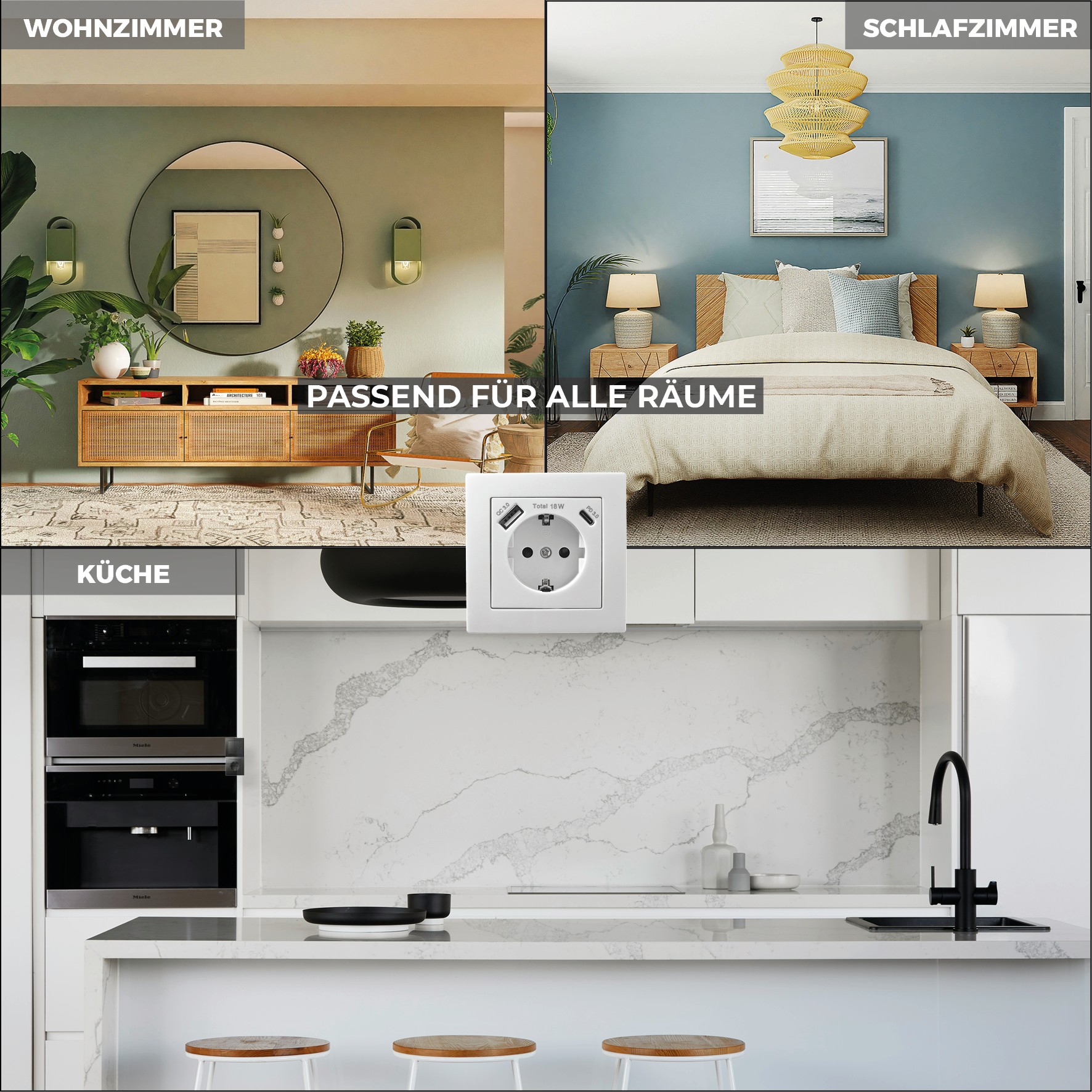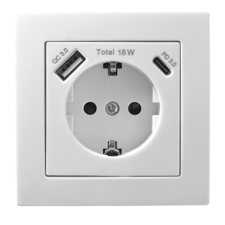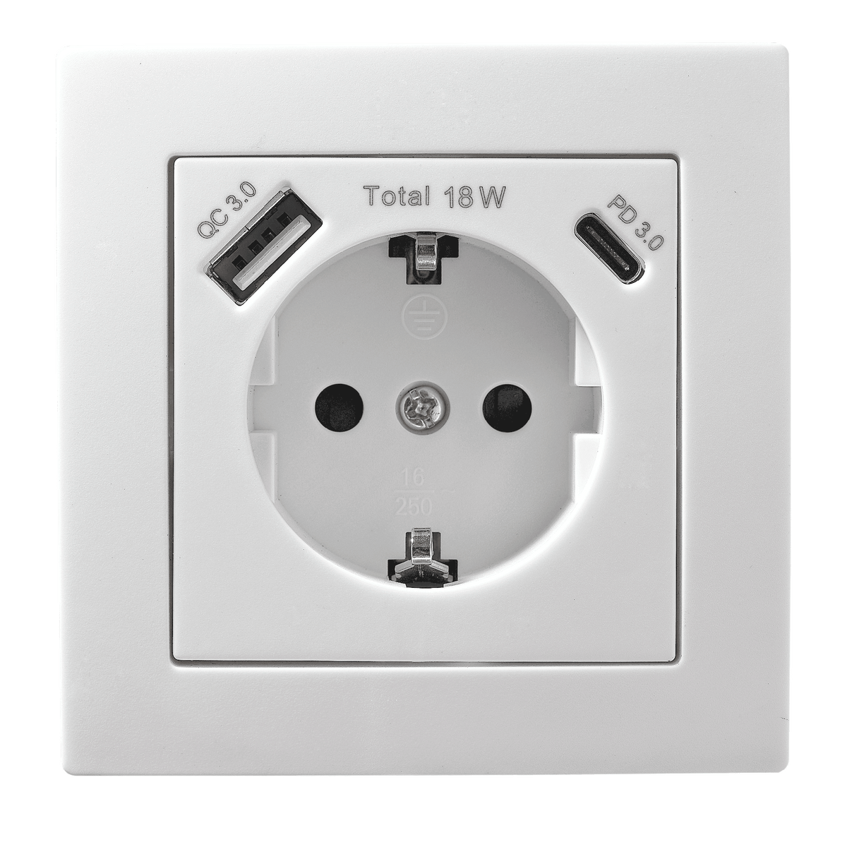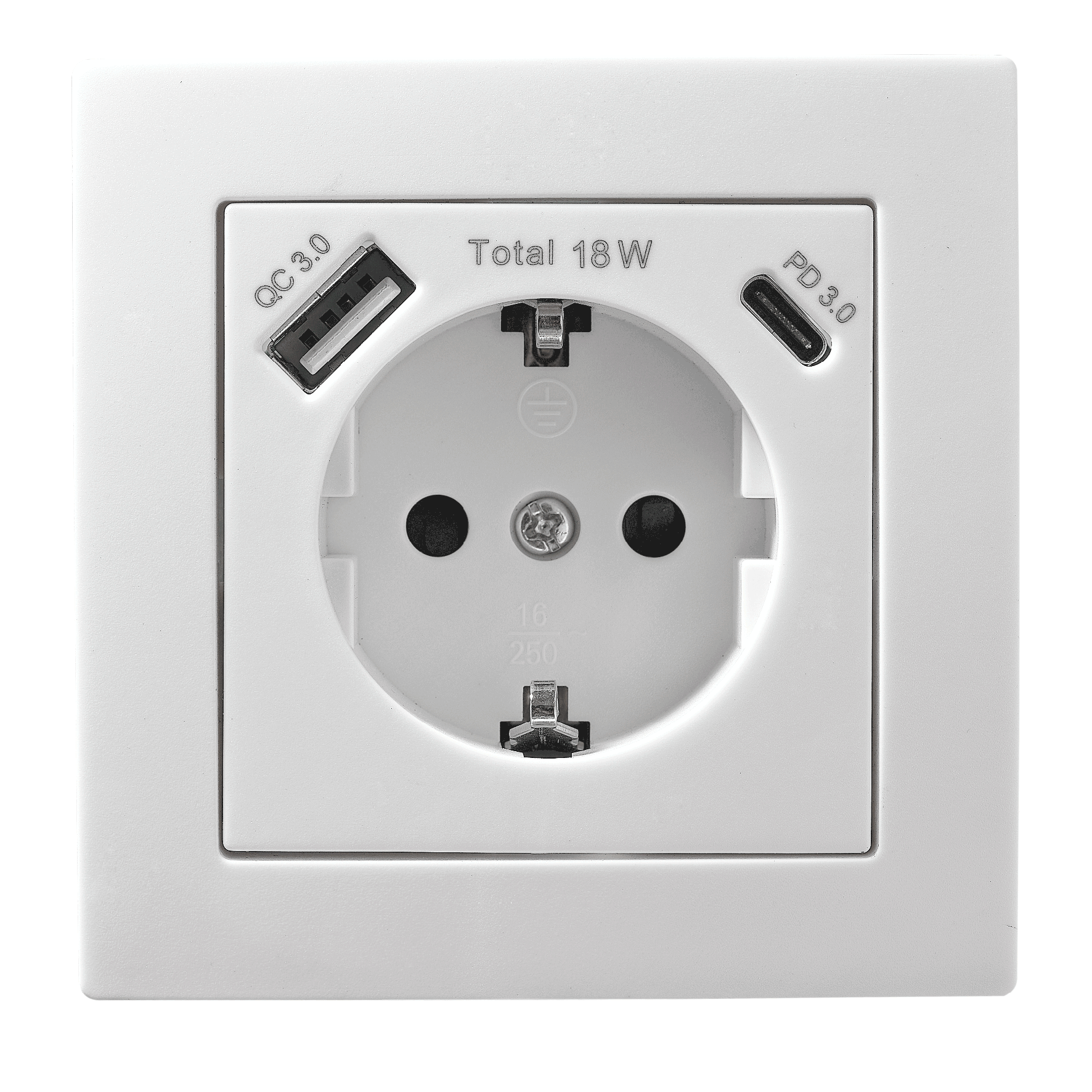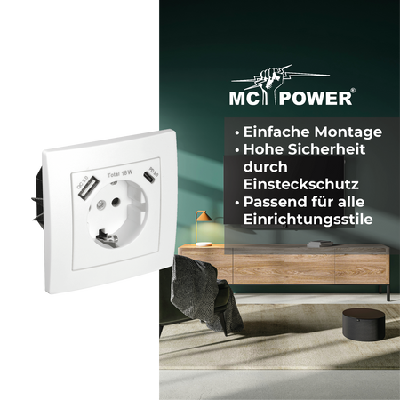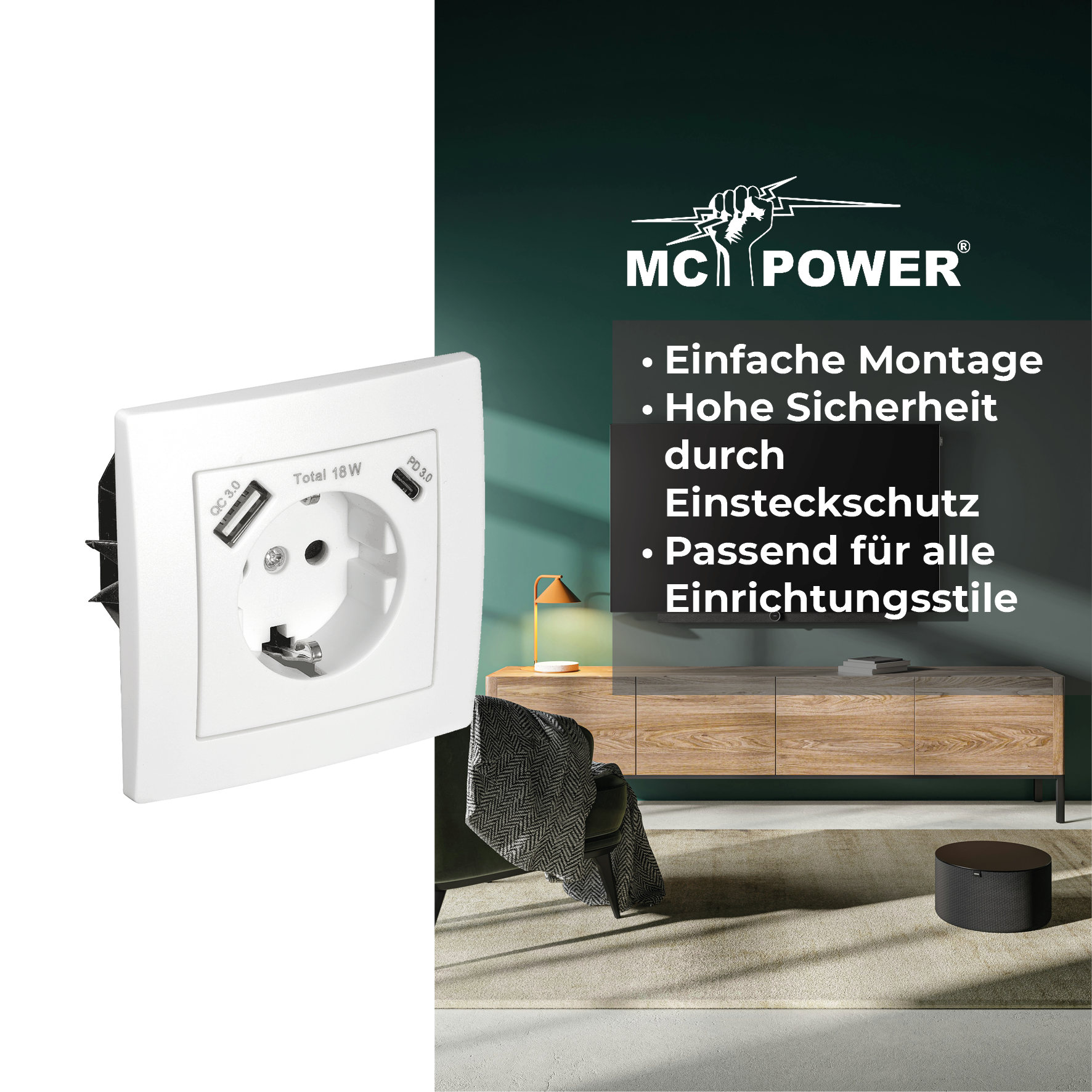 McPower "Flair" USB SCHUKO-Steckdose 1x USB-C 18W PD, 1x USB-A, UP, weiß
